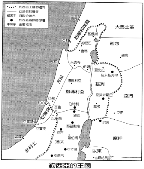 1. 约西亚(“耶和华已赐给”,参:约阿施之名,十二1)之治乃界于主前六四○/三九至六○九年,死于尼哥二世于主前六○九年为支持亚述王而挥军直抵 Harran 之时(《巴比伦年鉴》)428。耶底大意为“蒙爱的”。波斯加位于拉吉及伊矶伦之间(书十五39)。