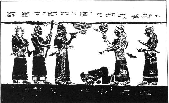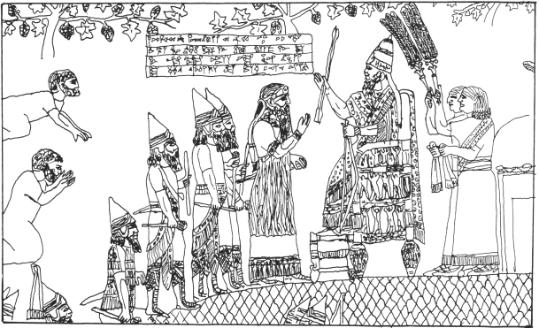 图十:西拿基立坐在宝座上检阅战利品