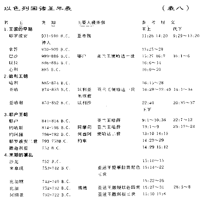 参考图表:以色列国诸王年表(表八)