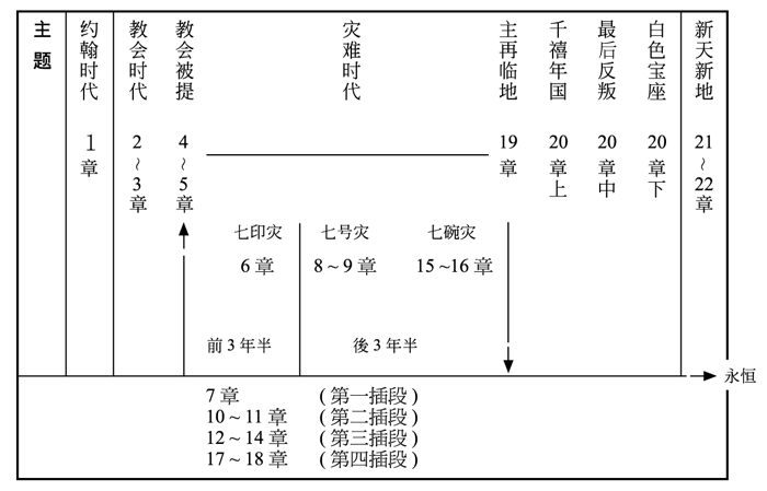 12章 七位物之首五 13章 七位物之六与七(海中兽与地中兽) 14章 十四万四千人与收割庄稼 15章 七碗灾之七天使 16章 七碗灾 17章 大淫妇巴比伦城 18章 哀哉巴比伦城 19章 羔羊婚筵与主再来 20章 千禧年 21章 新天新地与新耶路撒冷 22章 最后之呼召 |